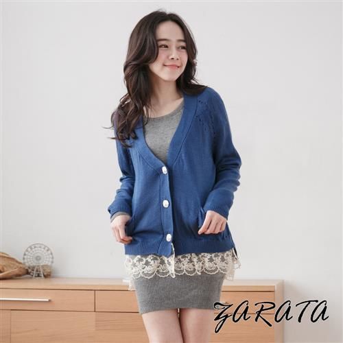 【ZARATA】下擺蕾絲開襟式針織短版外套(藍色)的產品介紹在下面,
